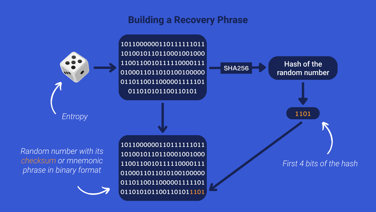When a wallet generates a recovery phrase, it is represented in a way that is easily readable by a human, usually in the form of 12 or 24 words. However, this sentence is actually based on a binary number, which also includes a checksum. To learn more about building a recovery sentence, I refer you to a detailed article that we have already published: What is the Bitcoin wallet recovery phrase?