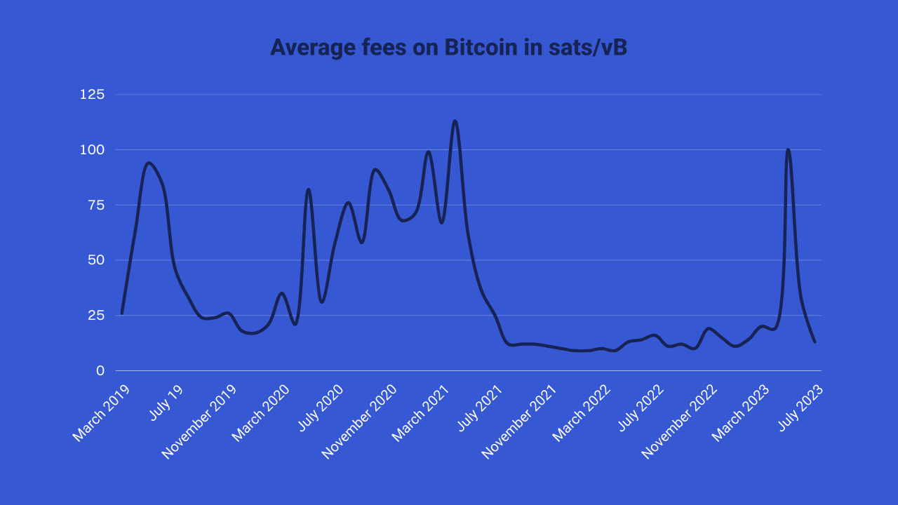 Obviously, the Bitcoin fee market is constantly fluctuating. During periods of high demand for block space, prices can quickly rise. On the contrary, during a slower period, the fees required to confirm a transaction will decrease. It is therefore essential to check the current fee rates when you broadcast a new transaction.
