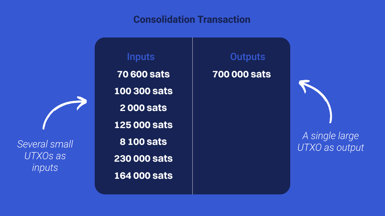 The usually recommended way to get around this problem is consolidation. This technique consists in making a transaction to your own wallet, by merging all your small UTXO inputs to generate a single large UTXO as output. It is advisable to perform this consolidation during periods of low transaction fees in order to maximize its effectiveness. If you want to know more about this practice, we have already written a detailed article on this subject with tutorials: ➤ Everything you need to know about consolidating Bitcoin coins.