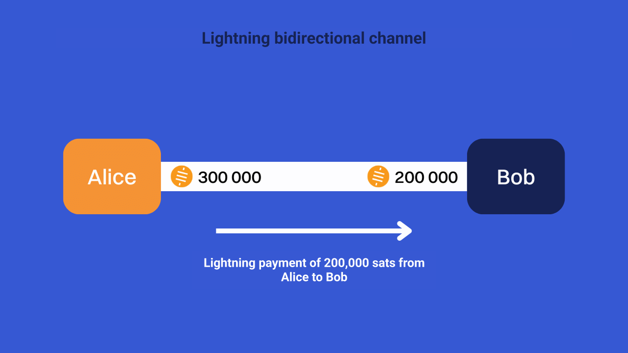 The balance of this channel is now 325,000 SATS for Alice, and 175,000 SATS for Bob.