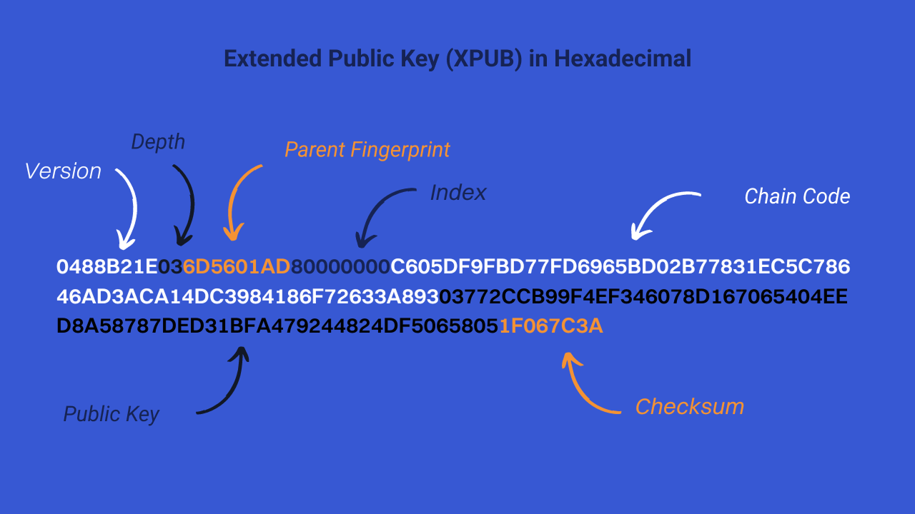 An extended key is thus a special parent key that makes it possible to derive pairs of child keys. What is called an extended public key, or an “xpub”, only allows the derivation of child public keys as well as receiving addresses.