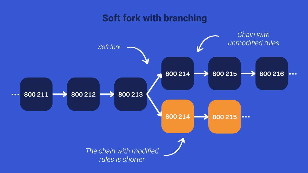 The soft fork is also characterized by a change in the Bitcoin protocol code. But unlike the hard fork, this change is backwards compatible. It means that The soft fork will essentially add new rules, or make the current rules more restrictive. This modification mechanism makes it possible not to produce a separation at the level of Bitcoin nodes.