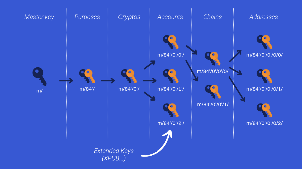 In other words, an extended private key allows access to all the bitcoins secured by the child keys, while the extended public key (XPUB) only allows you to consult the balance of the keys and to derive new addresses. This is why you are asked to enter your XPUB on a so-called “Watch-only” wallet.